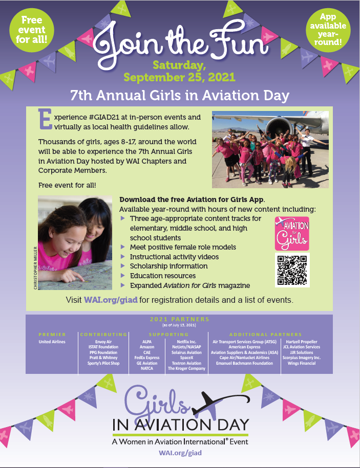 JCL Aviation Services is a proud sponsor of this year’s Annual Girls in Aviation Day, September 25, 2021. Visit WAI.org/giad for a list of events and registration details.