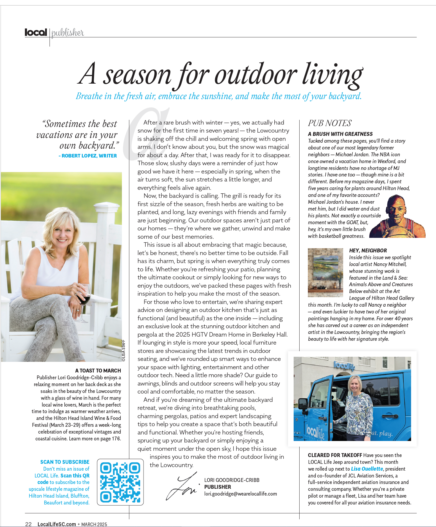 The March issue of LOCAL Life Magazine, which focuses on the strong connection with the ocean and coastal waters here in the Low Country, features our latest ad.