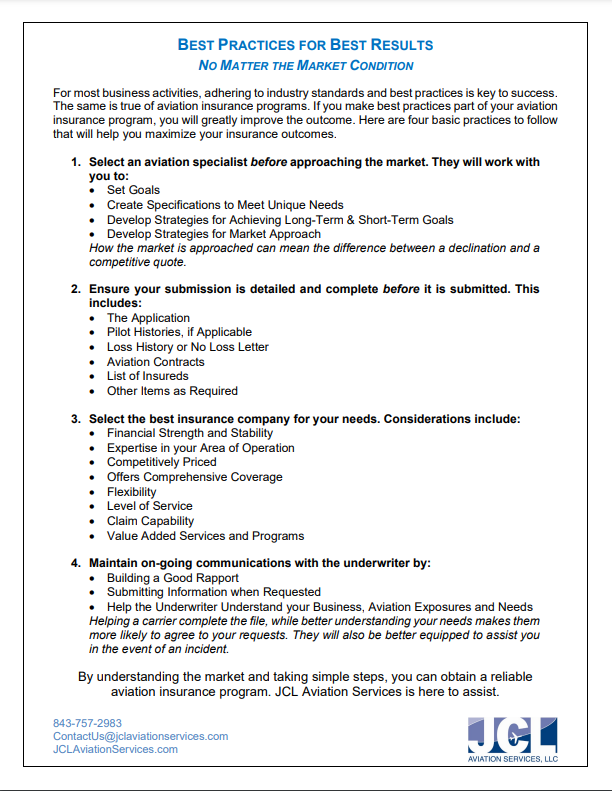 JCL is pleased to share a brief white paper on ensuring you obtain the best outcomes for your aviation insurance program.